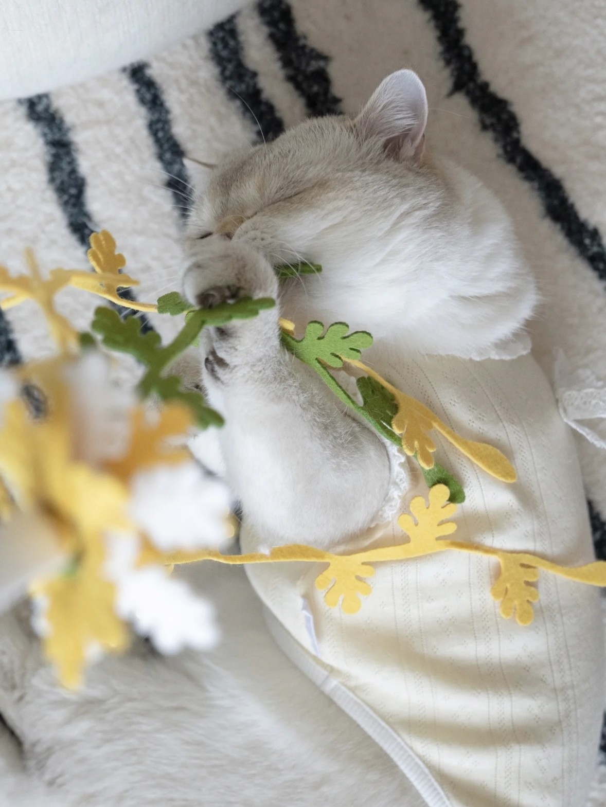 ・フェルトでできた植物部分は細かなデザインでネコちゃんの興味を引きます