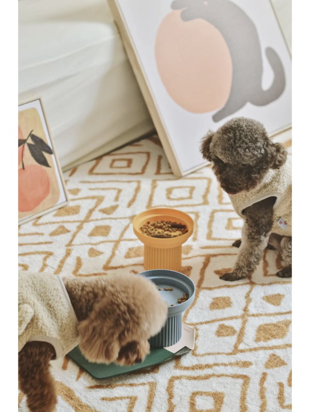 ・高さを出すことで、詰まりや吐き戻し、胃捻転の予防と関節部位への負担軽減を図り、快適な姿勢で食事ができるよう首や背骨に負担がかからないように設計されています