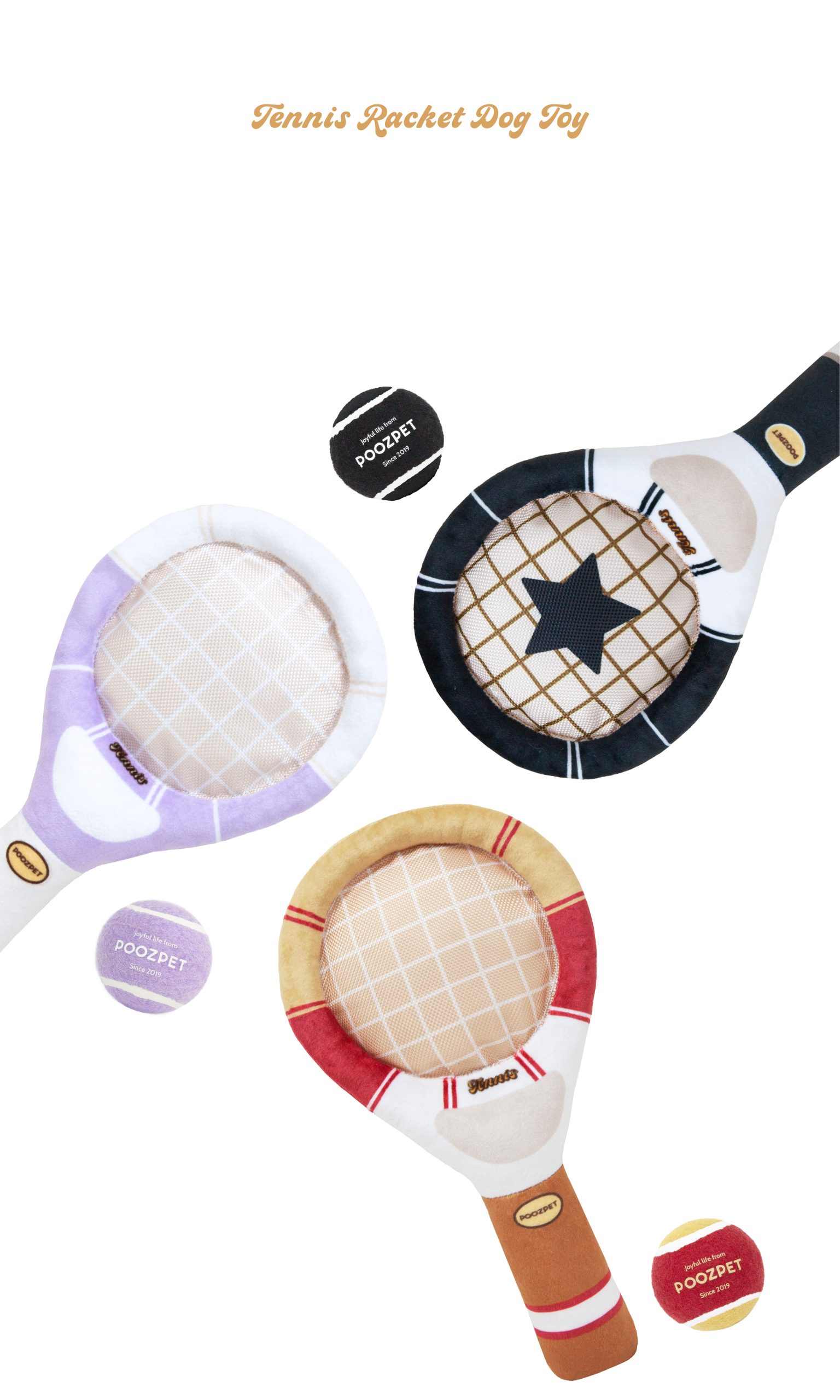 ワンちゃんにおすすめ、ボール付きテニスラケット型のおもちゃ!